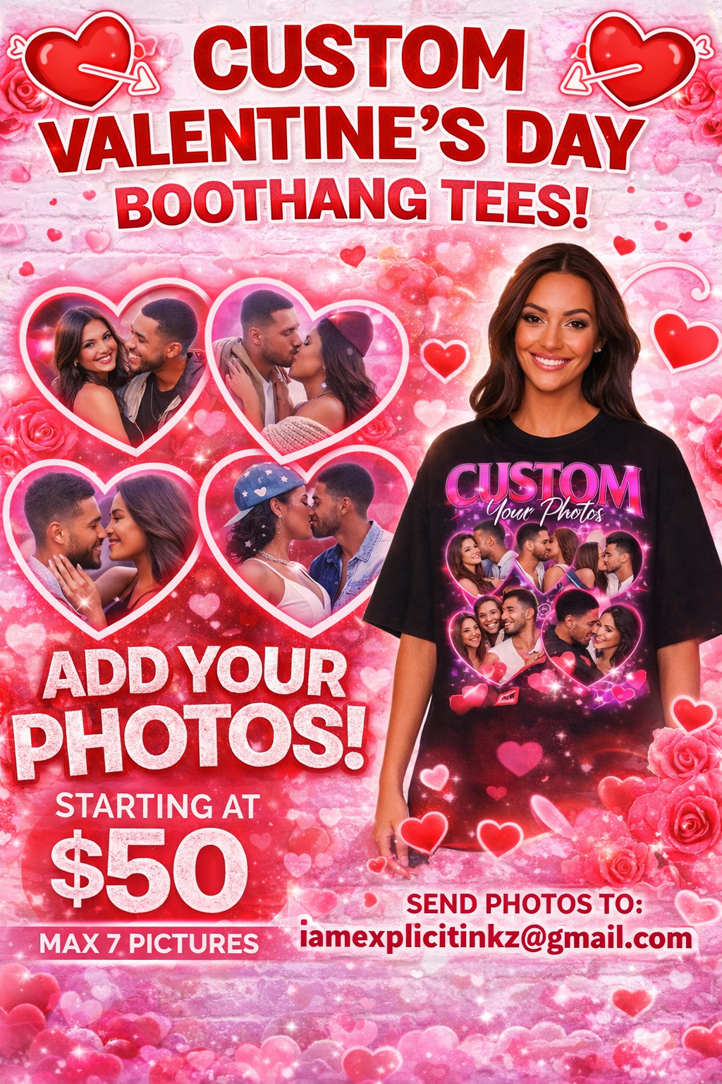 Choose your item Type/Size 2. Enter Name 3. Choose your DESIGN Color 4. Upload 5-7 images 5. Add to Cart